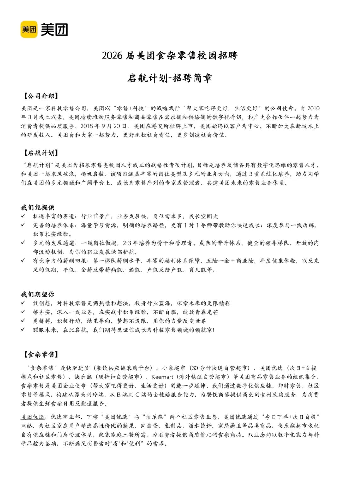 2026届美团零售类校园招聘——启航计划