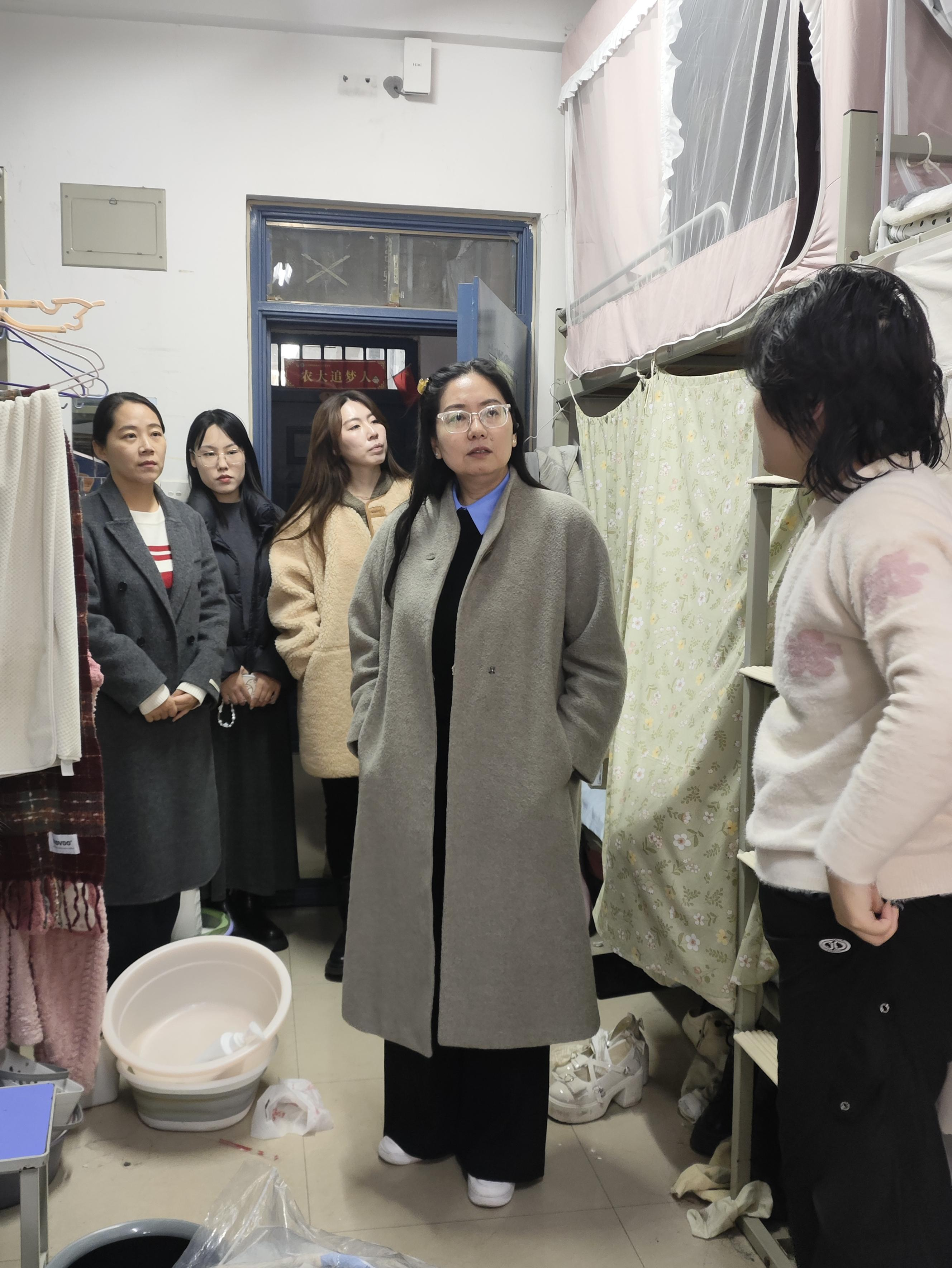 随后,院领导带队前往本科生及研究生宿舍,逐间细致排查安全隐患,并向同学们普及消防安全知识和宿舍安全管理规定,反复强调“人走电断”的重要性,引导学生养成良好的用电习惯。