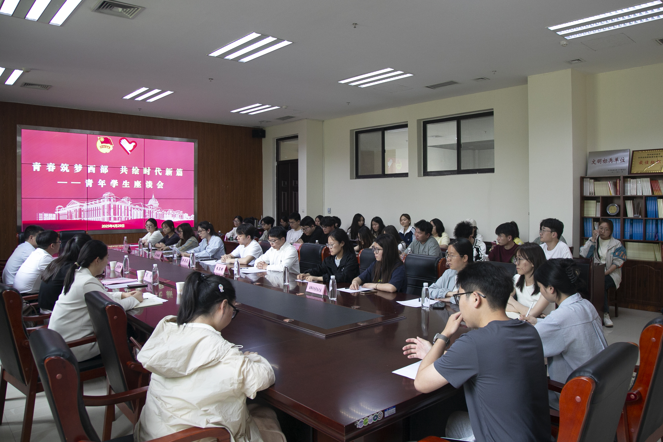 (通讯 冯慧丽 照片 余月圆)为引导和鼓励青年学子扎根基层、建功西部,4月29日,校团委联合我院共同举办“青春筑梦西部 共绘时代新篇”青年学生座谈会。活动特邀我院2005届毕业生、2005年“西部计划”项目志愿者张宜琳校友返校,与师生代表开展座谈交流。学校校友办公室、校团委、我院相关负责老师出席活动,校青年志愿者协会、学院报名2025年西部计划志愿者代表等参加活动。座谈会由校团委副书记张倩主持。