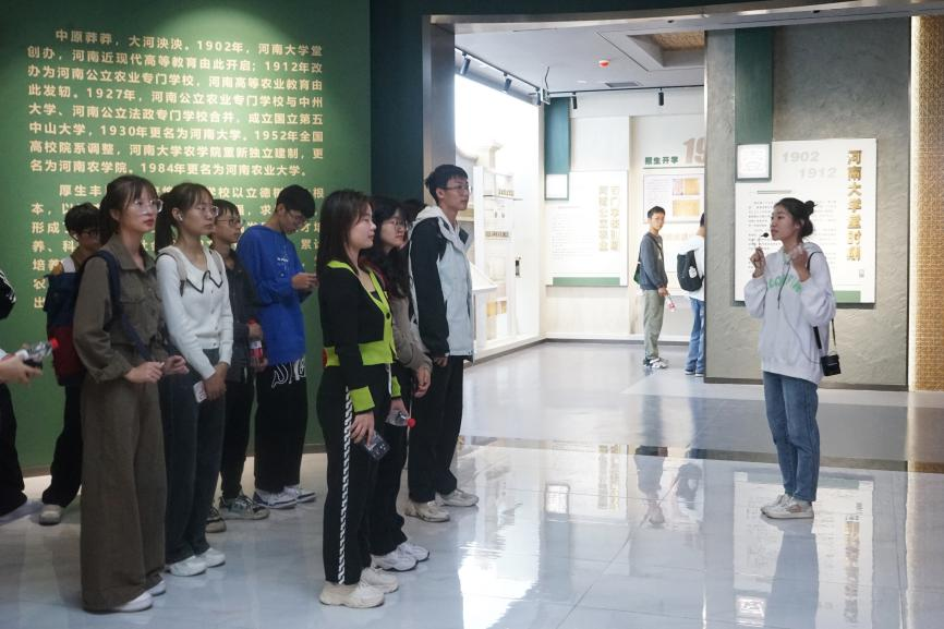 到达恢宏大气的龙子湖校区,我们有序排队进入校史馆,农大的故事如幻灯片一般一点一滴的映入我的眼帘。校史馆内资料详尽,把历史,文化,科技融为一体,展现了农大丰厚的历史底蕴!河南农业大学历经121年风雨,从建校到发展再到闻名遐迩,愈发辉煌,我为之感到自豪与骄傲!