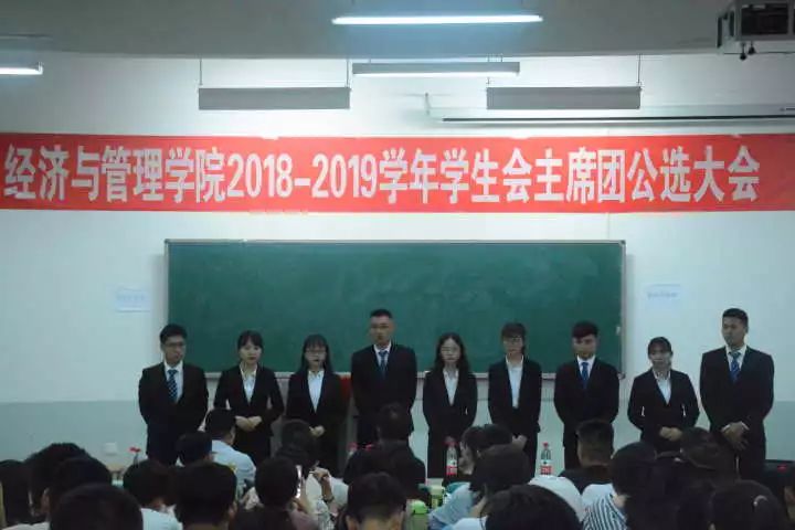 6月12日,经济与管理学院2018-2019学年学生会主席团公选大会在繁塔楼C-302举行。院团委书记王金铎、院党委组织员张倩、院团委副书记杨鑫、院团委辅导员冯慧丽到场出席,我院学生干部到场参加此次公选大会。