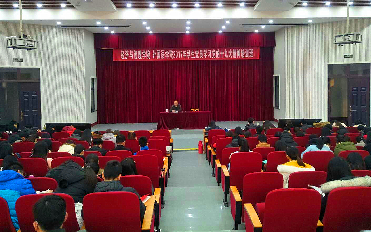 为深入学习宣传贯彻党的十九大精神,推进学院党委和党支部标准化建设,12月2日,经济与管理学院、外国语学院联合举办了2017年党员培训班。两个学院共计254名党员参加了此次培训。