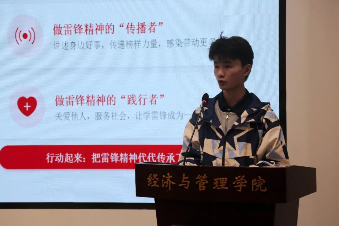 会议伊始,李蓓蓓与全体青马班学员集体观看并学习了“辽宁时代楷模”年轻英雄金成龙践行雷锋精神的先进事迹,让大家深刻感受到雷锋精神在当代的鲜活传承。随后,工商jg23班王自强以“忠诚、奉献、坚韧”为关键词阐释雷锋精神,结合青马班志愿服务实践,呼吁学员知行合一,让雷锋精神融入日常;经济23-3班李琰琪分享了自身践行雷锋精神、参与志愿服务的感悟,倡导大家从小事做起,做雷锋精神的践行者;农经24-2班雷晨瑞从雷锋生平、精神内涵、榜样案例、实践要求四个维度,系统讲解了雷锋精神的传承与实践。活动最后,李蓓蓓做总结发言。她倡导要将雷锋精神融入日常学习、生活与实践中,以实际行动践行初心使命。