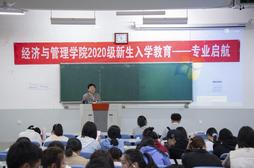 11月4日,经济与管理学院在教学楼C202举行2020级新生入学教育——专业启航专题报告。此次报告由经济贸易系副教授戴强老师主讲,2020级国际经济与贸易专业全体新生积极到场参加。