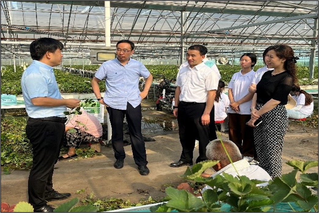 首先,成员来到杨超飞校友的哈密瓜园,杨超飞向大家展示哈密瓜园的经营情况,详细地介绍了哈密瓜的品种、产量、产地、价格等,以及市面上与其他哈密瓜厂商的价格对比,了解后领导给予高度评价。母校与校友是相互造就的关系,校友是母校最亮丽的名片、最宝贵的财富。学校高度重视校友的工作,提供合作、扩大宣传,打破校友与母校沟通的障碍,极力关注校友事业的发展,加强常态化走动,筑牢感情基础,推动教育业与事业齐头并进,共赢发展。随后,一行人前往王智豪校友的草莓园,听王智豪介绍草莓的生长阶段历程,了解草莓园的经营情况,同时还参观了草莓园的种子研究实验室。校友将农业与科技相结合,使大棚农业的经营管理更加科技化、效率化。在参观草莓园大棚的过程中,领导们看到正在裁剪草莓苗的实践小组,与其进行了亲切的交流和慰问。