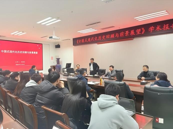 (通讯 宋春晓 乔宇 图片 乔宇)为深化师生对中国式现代化与高质量发展的理论认知,12月8日,我院特邀河南省统计局一级巡视员、高级统计师赵德友博士在A215会议室作题为《中国式现代化历史回顾与前景展望》的学术报告。学院领导班子、教师及研究生代表共同参与,现场气氛热烈,学术氛围浓厚。