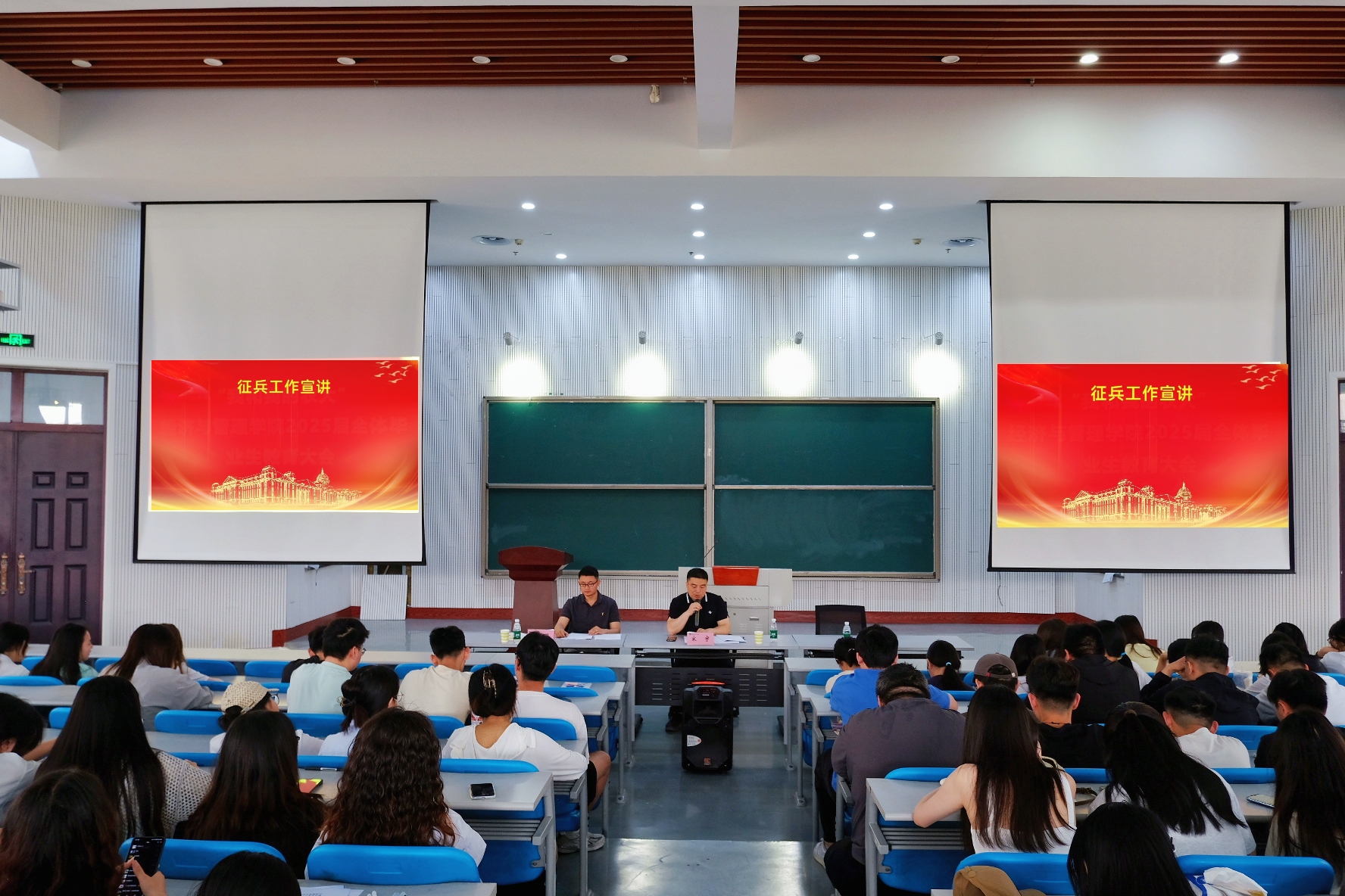 余月圆则针对就业与档案转接问题进行解答,详细说明了“三方协议”的签订流程及具体要求、毕业生人事档案的保存、转接等内容,要求大家认真落实相关事项,同时也对资助政策“两节课”和征兵工作进行了宣讲。接着,宋宇结合当前就业形势进行分析,并提出三点宝贵建议:一要校准人生坐标,树立科学择业观;二是拓宽发展路径,构建多元就业格局;三是厚植“五个一”家校情怀,强化使命担当。接着,学生代表李玉正宣读《文明离校倡议书》,倡导同学们文明离校,以良好风貌告别校园,为求学生涯画上圆满句号,也为未来就业与发展开启积极新篇。