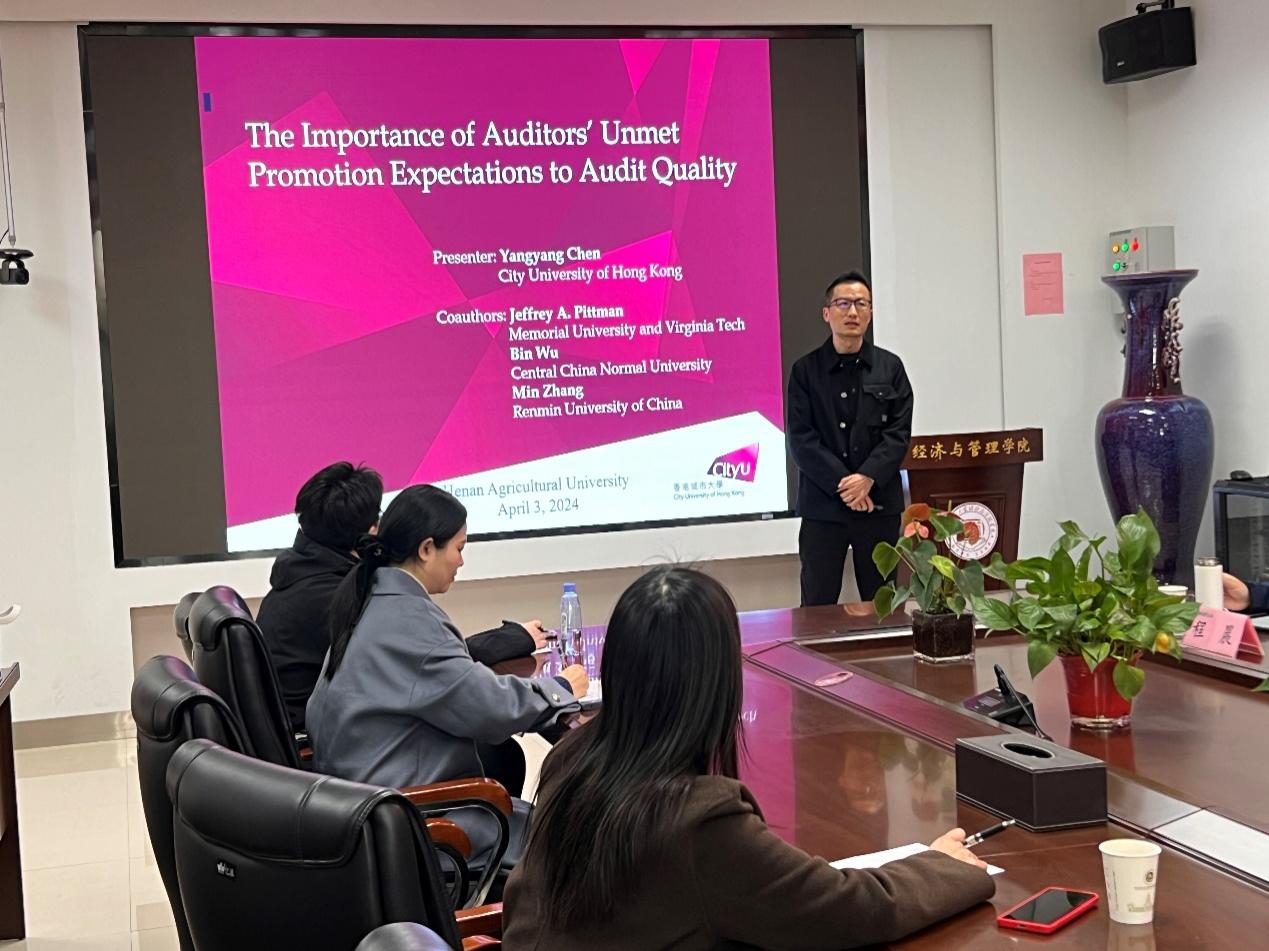 紫竹论坛 | 香港城市大学陈旸旸教授做“The Importance of Auditors’Unmet Promotion Expectations to Audit Quality”学术报告