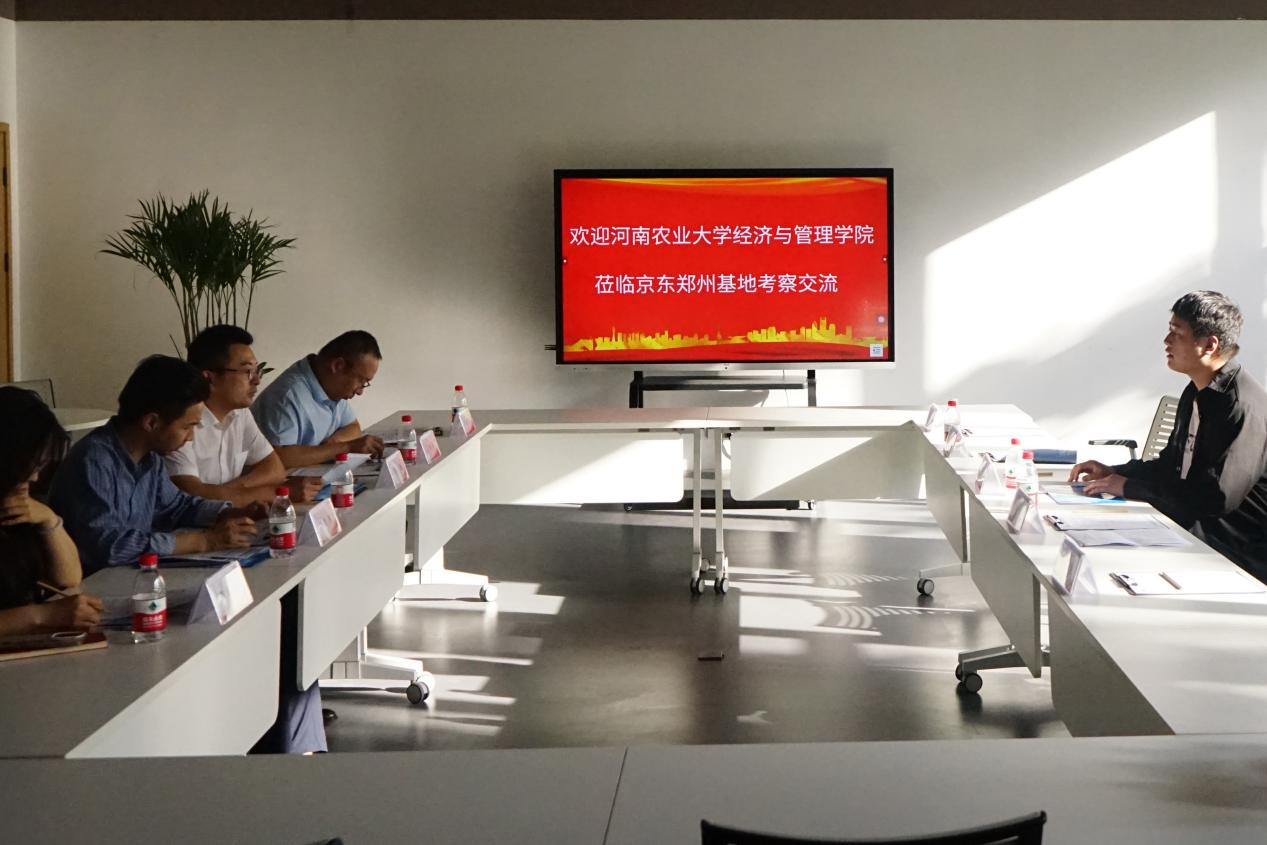 学院一行人首先来到了京东数字经济展示中心。在这里,与京东郑州基地负责人耿光辉等企业代表进行深入交流,通过观看图例、视频等多种形式,详细了解了京东科技在数字经济领域的创新成果和应用实践。在参观交流的过程中,李蓓蓓与企业方面就产学研合作、人才培养、技术支持等方面进行了深入探讨,共同探讨了合作的方式和机会。