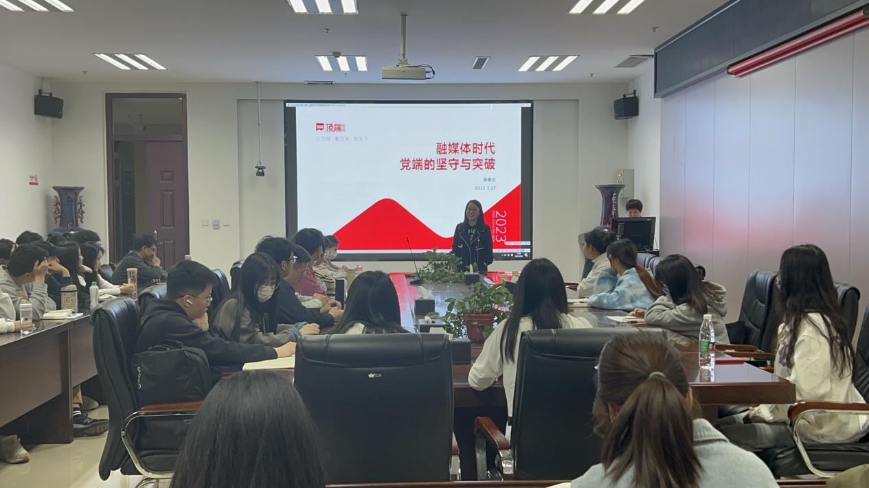 为深入学习贯彻党的二十大精神,做好学院宣传工作,进一步提高全体师生的新闻宣传能力水平,4月7日,我院特邀顶端新闻记者薛素芬在A215开展《融媒体时代党端的坚守与突破》专题讲座。院团委老师、部分学生代表到场参加。