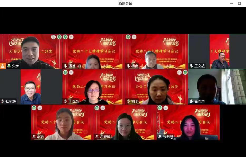 10月25日,为响应党中央号召、加强校内党员群体及广大师生对党的二十大精神的认识与了解,河南农业大学经济与管理学院学生党建办公室全体成员开展了专题学习会,并通过研读二十大报告、分享研读感悟、发表专题演讲、展示研读笔记等具体活动,切实增强了对党的二十大精神的理解与认识。本次专题学习会切实加深了参会人员对党的二十大精神的理解与认识,更加坚定了自身的理想信念,为今后的学习、工作提供了精神指引,激励着与会人员奋力前行。