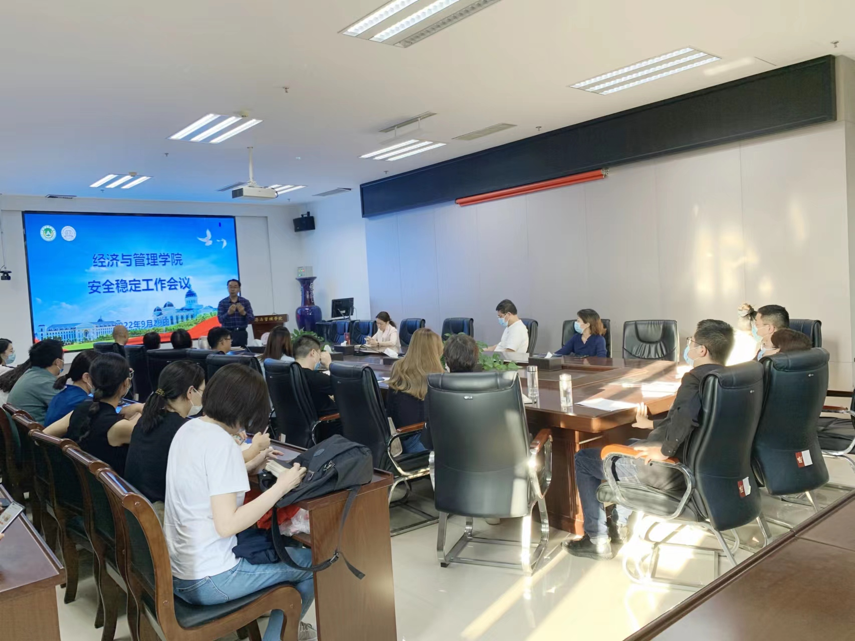 9月29日下午,我院在教学楼A215会议室召开安全稳定专题工作会。院班子成员、系主任、班主任及辅导员参加会议。