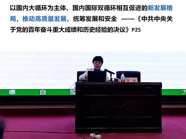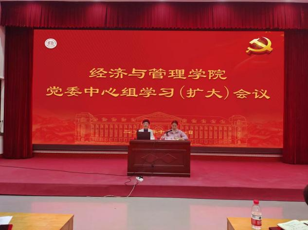 为凝聚思想共识、汇聚奋进力量,10月11日,我院召开党委理论中心组学习(扩大)会议,特邀马克思主义学院教授陈娱讲授马克思主义中国化时代化的最新成果,学习《习近平谈治国理政》第四卷。学院全体教职工参加学习。会议由党委副书记方芳主持。