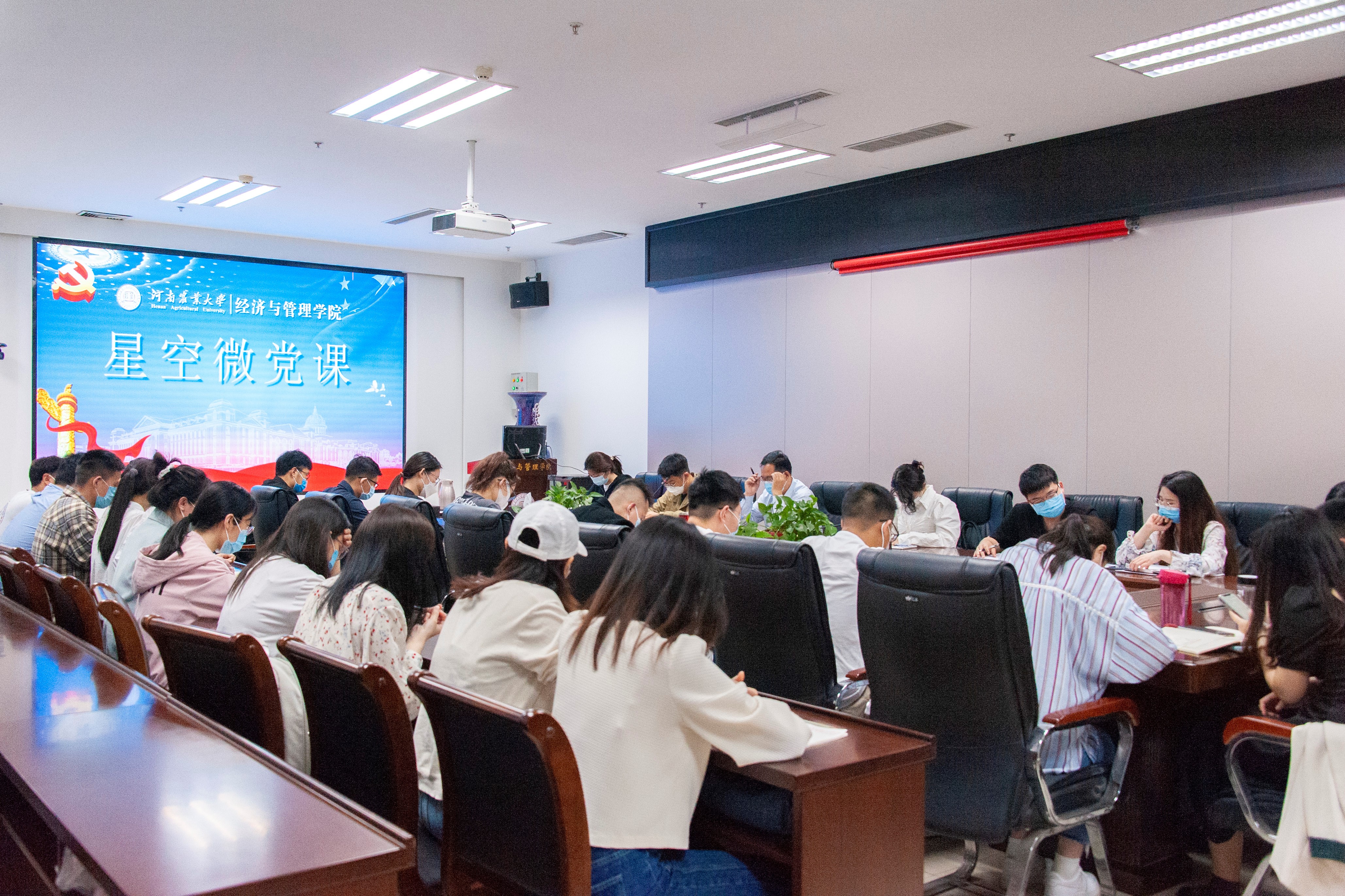 4月26日晚7点,我院于教学楼A215举办新一期星空微党课,院党委书记牛青杨与研究生党员代表面对面,共同学习习近平总书记在中国人民大学考察调研时的重要讲话精神,并与同学们座谈交流学习心得体会。院团委老师余月圆主持本期星空微党课,近30名研究生党员代表参加。