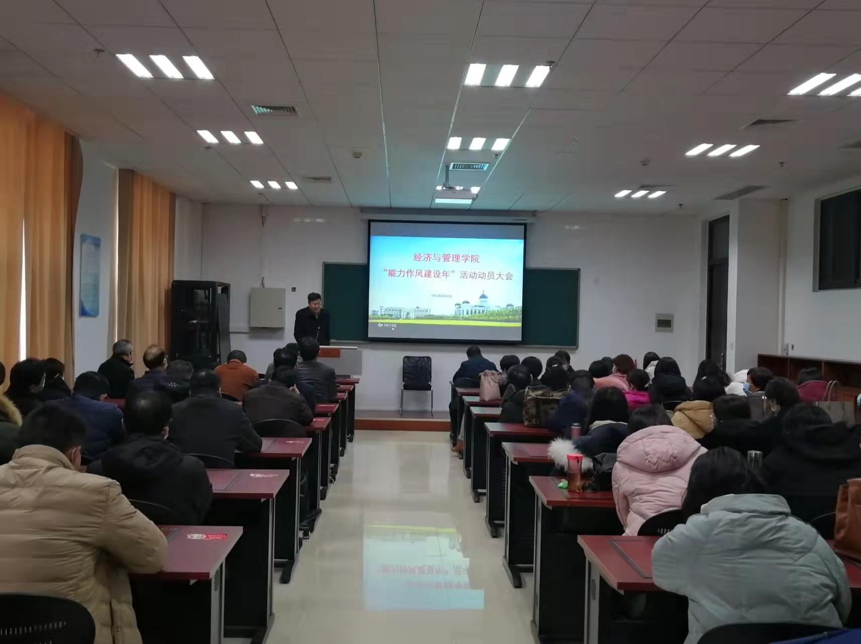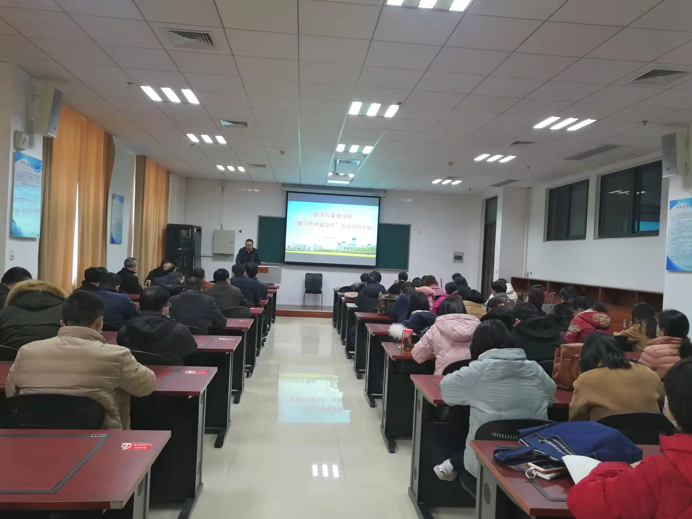 2月22日下午,我院在B208会议室召开“能力作风建设年”活动动员大会,对学院开展“能力作风建设年”活动进行了安排部署。院领导班子及全体教职工参加会议。院长马恒运主持会议。