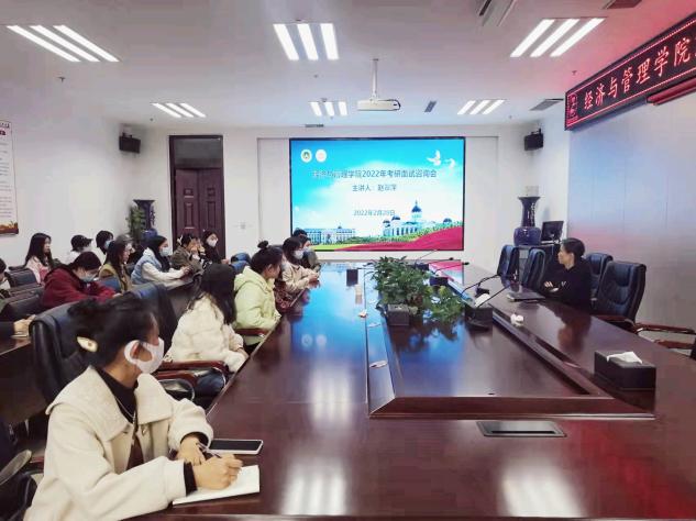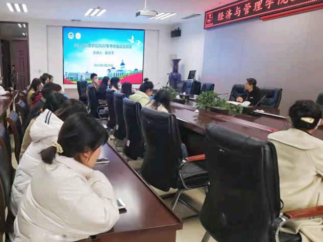 2月28日,经济与管理学院在教学楼A215举办2022年考研面试咨询会。本次会议由副院长赵翠萍主讲,部分学生积极到场参加。