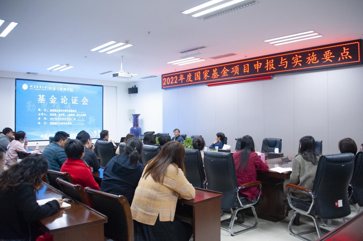 为进一步做好2022年国家基金项目申报工作,提升学院基金项目申报水平,10月26日,我院于教学楼A215举办2022年度基金论证会。华中农业大学博士生导师、二级教授张俊飚主讲,院长马恒运、副院长赵翠萍出席本次会议,学院部分教师、博士生到场参加。