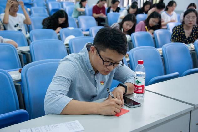 在余月圆老师的带领下,同学们手持红色信纸,书写下对党、自己、同学和学弟、学妹的期望和祝福,并互相交换贺卡,让薪火传承、祝福悠扬。