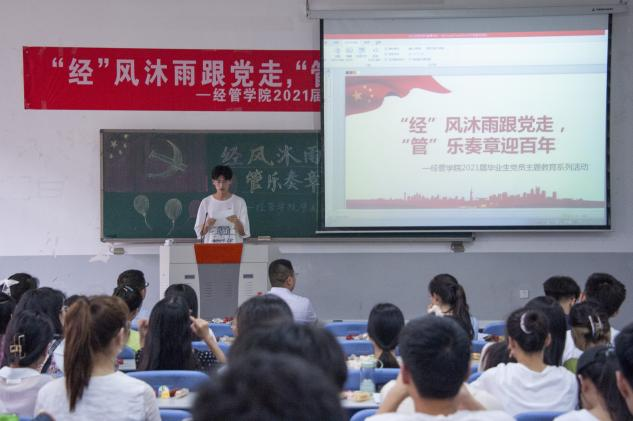 为庆祝中国共产党建党100周年,激励毕业生党员持续学党史,不忘初心,牢记使命,6月9日,经济与管理学院举办了“‘经’风沐雨跟党走, ‘管’乐奏章迎百年”毕业生党员主题教育系列活动,院团委老师及17级毕业生党员到场参加。