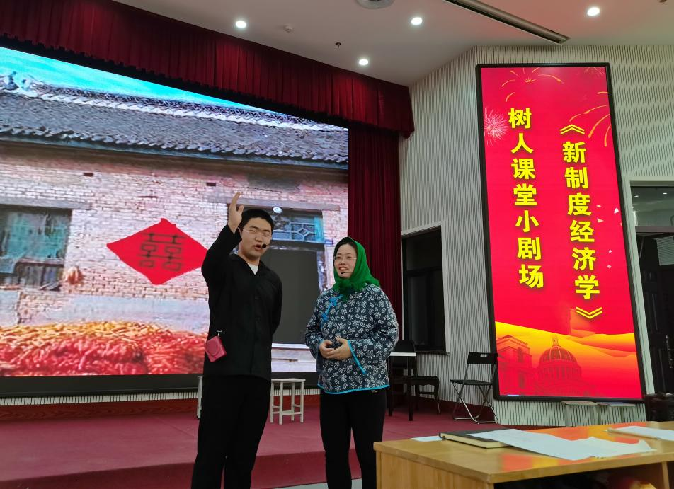 5月20日,我院刘宁老师组织的《新制度经济学》课程“树人课堂小剧场”在教学楼大教室1隆重举行,本次活动由学生孟晶晶和翟云坤主持,王娟老师、丁俊成老师、刘延锋老师出席此次活动,刘宁老师所带2018级经济学专业五个班的全体学生及研究生积极到场参加。经过两个半小时的精彩演出,该活动取得极佳的教学效果,受到学生热烈欢迎,学生不仅学到了很多知识,还增强了制度自信,活动大获成功。