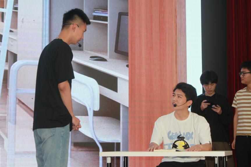 《百年党史青年说》是院艺术团话剧组为了纪念共产党建党百年专门创编的。组织就是制度,什么是中国最大的制度创新?就是中国共产党的成立!该剧讲述了:中国共产党从嘉兴南湖红船创立,后不断突破常规,创新各种制度,用实践证明了社会主义制度的强大优越性。其中马向远、韩笑饰演的一大代表非常成功,全剧的“混搭风”给人留下深刻印象,让学生在观看学习的同时受到一次深刻的党史教育。