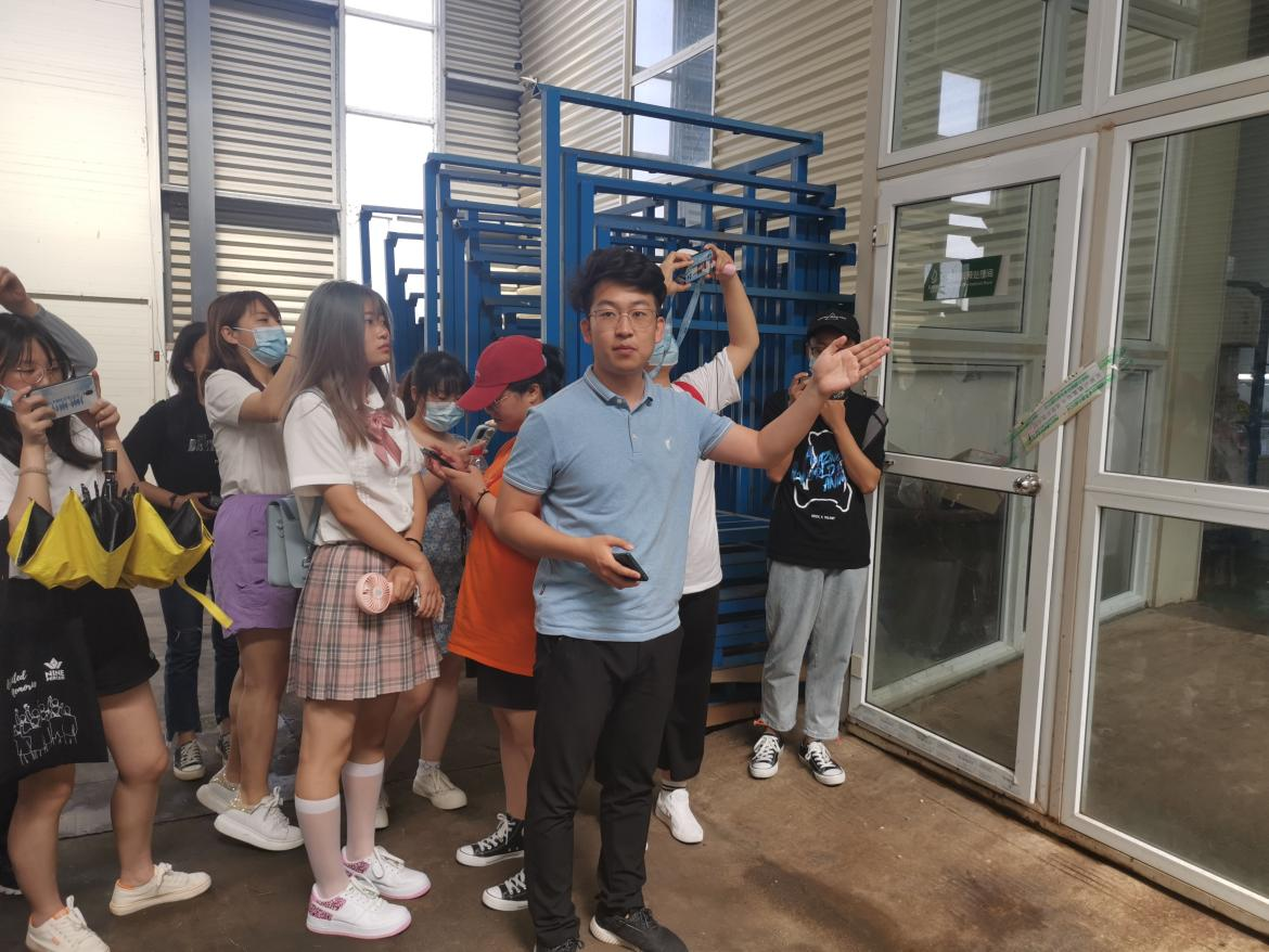 接下来,在参观完种植园之后,九棵树销售总监李欣奇又带领师生到香椿生产车间的参观通道,了解香椿酱的车间生产线,李总监从香椿酱的原材料来源、处理方式讲解到加工过程,以及普及一些浓缩汤底等生活知识。