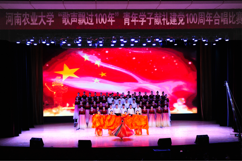 为庆祝中国共产党成立100周年,进一步激发青年学子的爱党爱国热情,弘扬爱国主义精神,传承红色基因,厚植爱国主义情怀,河南农业大学于4月27日在文化路校区千人大礼堂举办了河南农业大学“歌声飘过100年”合唱比赛,我院合唱团参赛并荣获特等奖。
