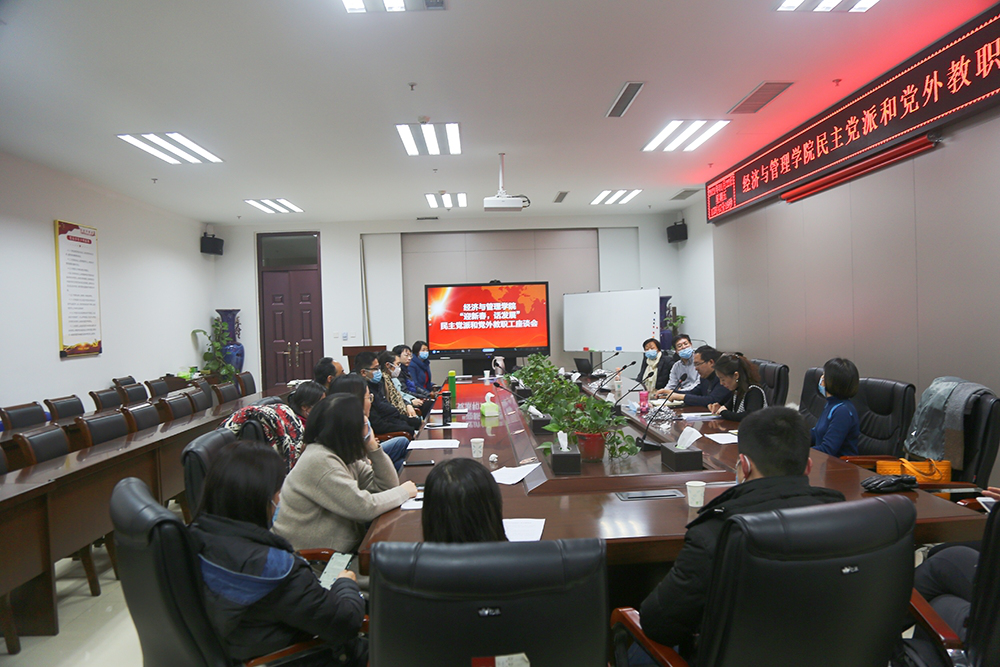 1月22日,经济与管理学院在教学楼A215会议室召开 “迎新春  话发展” 民主党派和党外教职工座谈会,学院班子成员、民主党派和党外教职工参加,会议由党委书记牛青杨主持。