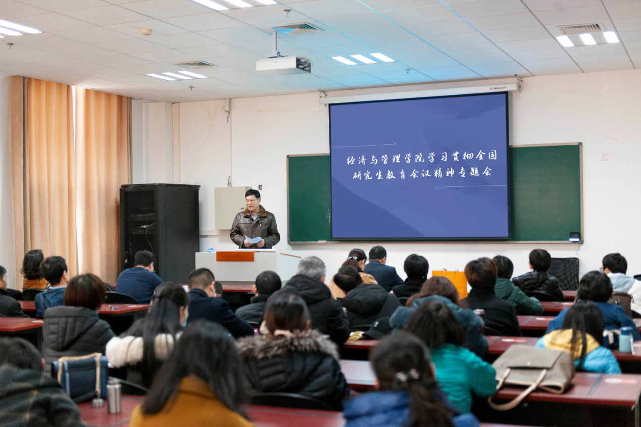 为深入贯彻全国研究生教育会议精神,12月22日,学院在龙子湖校区繁塔楼B208召开了学习贯彻全国研究生教育会议精神专题会议,会议由院党委书记牛青杨主持,院长马恒运主讲,学院全体教师及研究生参加专题会议。