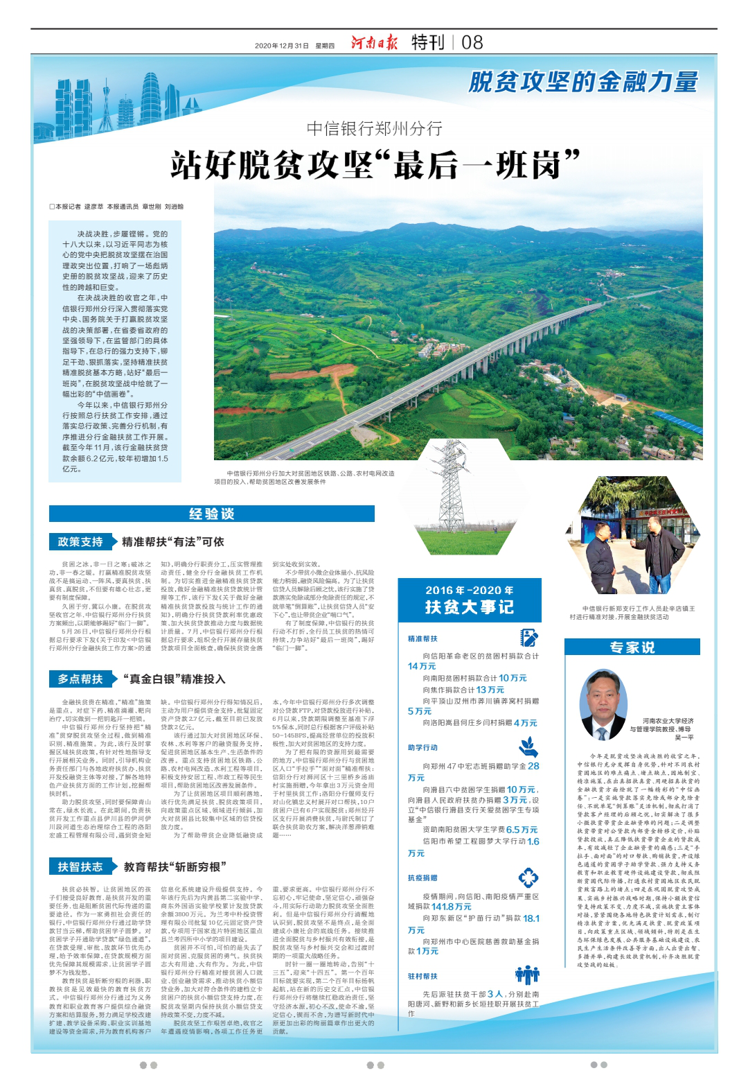《河南日报》刊发我院吴一平教授关于中信银行郑州分行脱贫攻坚成效的评论