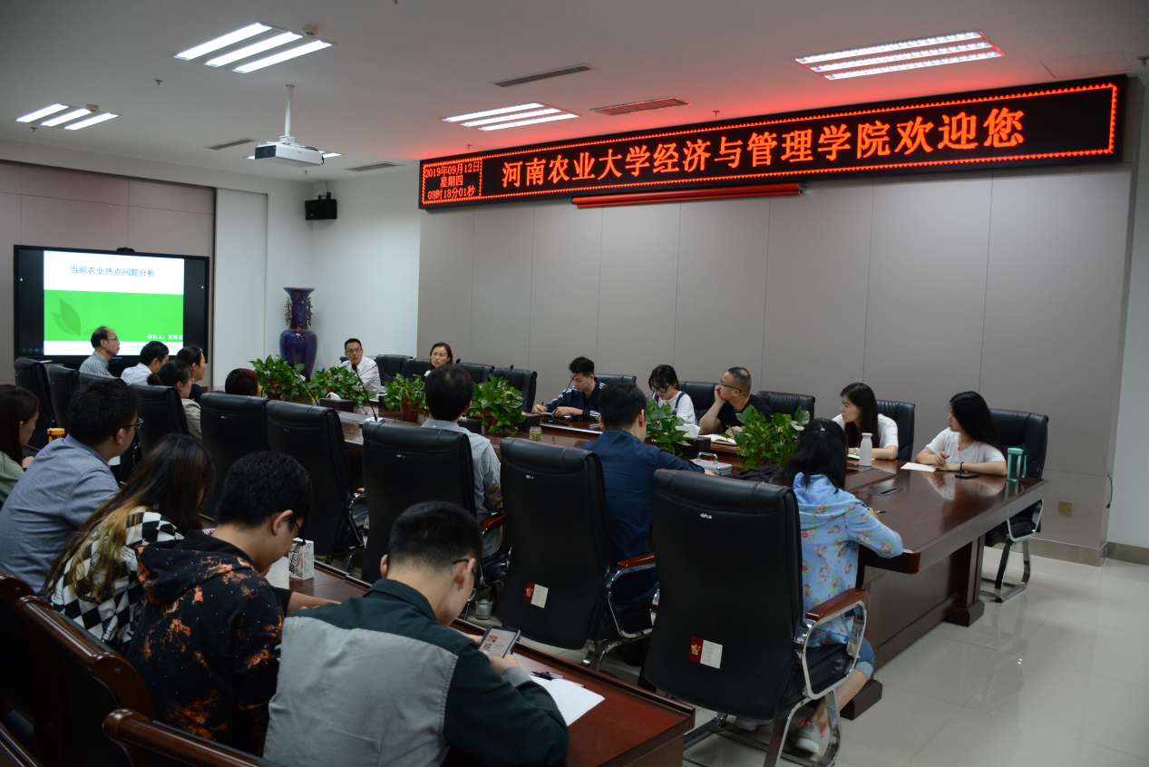 近日,经济与管理学院邀请农业农村部农村经济研究中心副处长夏海龙博士,在我校繁塔楼A215开展“当前农业热点问题分析”专题讲座,我院部分教师及全体研究生参加了此次讲座。讲座由我院副院长赵翠萍主持。