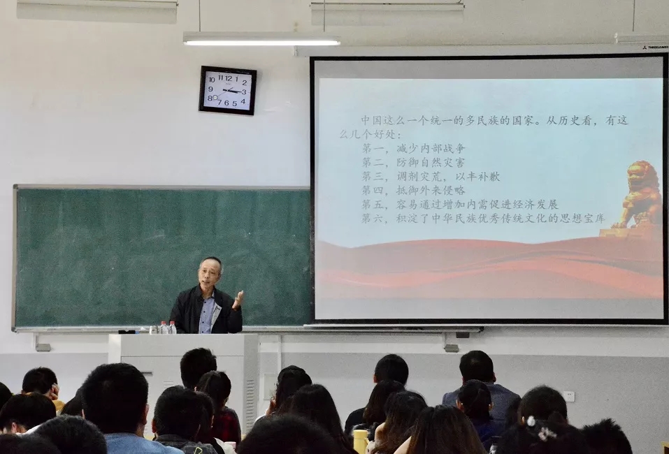 本次报告会主要包括“中华五千年的历史经验”、“中国近代历史的几个根本问题”、“新中国的光辉历史”和“为实现中国梦立志成才”四个内容。首先,李老师深入解读了中华五千年连续发展的文明史,分别从民族、经济、政治、文化四个方面引领大家重新认识了一个统一的、多民族的中国。他认为,重视历史、研究历史、借鉴历史,可以给人类带来很多了解昨天、把握今天、开创明天的智慧。接着,李老师全面分析了中国近代历史的几个根本问题,再次肯定了中国共产党在社会主义建设发展中的领导地位。宣讲过程中,老师激情互动,学生热情响应,现场气氛活跃热烈。随后,李老师紧扣习近平总书记的十九大报告对新中国成立以来的各个阶段做了深刻解读,详细汇报了改革开放40年来中国社会的发展成就。最后,李世国老师将话题回归我校,引出了对当代大学生的要求,切实强调了广大青年大学生对于建设社会主义的重要作用,并要求同学们自觉融入实现中华民族伟大复兴的中国梦的实践之中,此次报告会在热烈的掌声中落下帷幕。