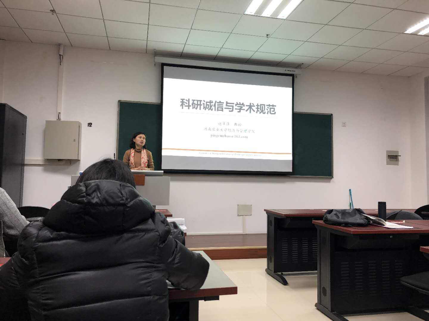 1月2日,我院在繁塔楼B208举办题为“科研诚信与学术规范”的专题报告。本次讲座由副院长、博士生导师赵翠萍主讲,我院全体研究生积极到场参加。