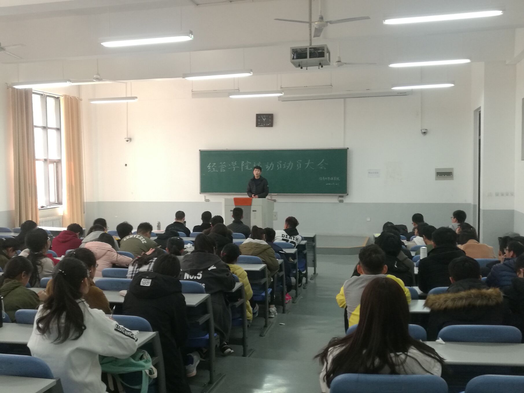 3月21日,经济与管理学院关于迎战第50届校运动会运动员动员大会在繁塔楼C102举行,该院学生会体育部成员与运动员积极参加,院团委副书记杨鑫到场出席。