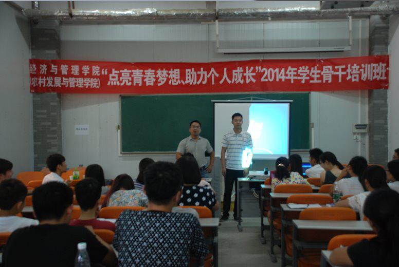 为进一步提高院学生干部的综合素质,促进学生干部的全面发展,8月28日下午15时,经济与管理学院“点亮青春梦想,助力个人成长”2014年学生骨干培训班之创业分享会在兰亭大四举行。河南广发财务管理有限公司总经理袁军,郑州真派商贸有限公司总经理张啸宇及速录服务有限公司总经理庞少鹏作为嘉宾出席此次分享会。院团委书记郭娟、团委老师张倩、杨鑫、杜世杰及全体学生干部参加。会议由郭老师主持。