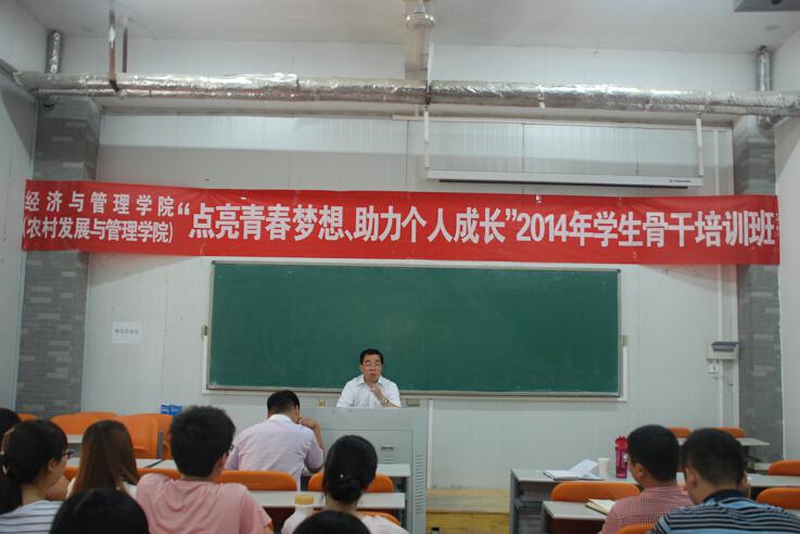 8月31日下午,院党委书记张泽星出席我院2014年学生骨干培训班并为全体学生骨干作辅导报告。院团委书记郭娟、副书记王金铎、团委老师杨鑫、黄妍、杜世杰及全体学生干部参加此次报告会。会议由郭娟老师主持。