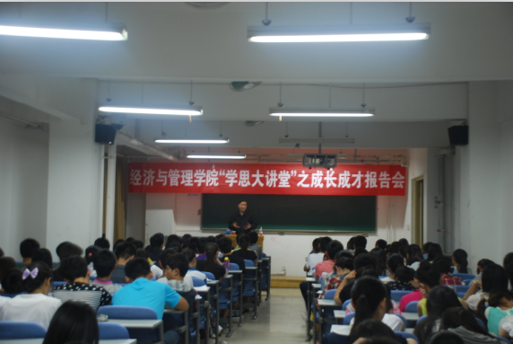 5月12日晚,经济与管理学院“学思大讲堂”之大学生成长成才报告会在龙子湖校区紫竹楼附203举行。校关工委杨明亮教授作为主讲嘉宾与学院150多名学生围绕“素质教育与大学生核心竞争力培养”展开畅谈。