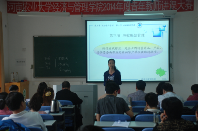 5月13日下午2:00经济与管理学院(农村发展与管理学院)2014年度青年教师讲课大赛在龙子湖校区紫竹409举行。河南农业大学校工会副主席茹光明、校教学督导组组长杨明亮、教务处副处长化青报莅临指导,并与我院其他获得过省级教育教学奖励的老师组成评委团。