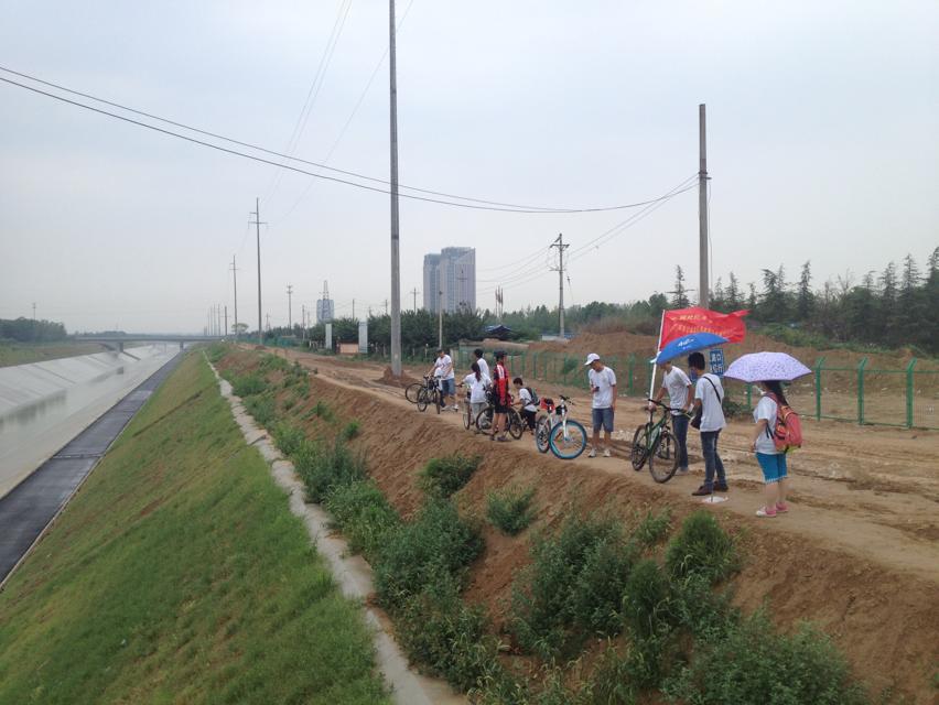 “引千里水源 铸绿色长廊”,这是印在宣传条幅上的话,同样也是队员们心中的美好期许。7月5日,实践团队前往平顶山市五岳生态保护区南水北调干渠的沿线区域,向当地居民和路人们发放调查问卷,对此段南水北调中线工程工作进度及水源保护现状展开调研。随后,队员们在宝丰河段输水渠沿岸道路举行了绿色骑行活动,号召更多的民众提高爱护南来之水的意识,提高人民群众的环保意识。