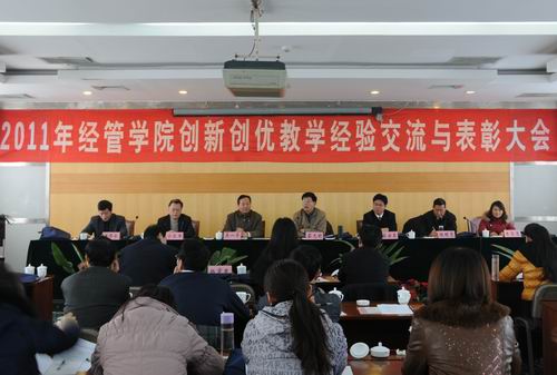 我院唐华仓副院长首先对我院2011年教学工作进行了总结。2011年我院在教学计划改革、教学质量工程建设、教学研究等方面都取得了不错的成绩,教学竞赛、教学检查等工作的开展促进了我院教学质量和人才培养水平再上新台阶。吴一平院长宣读了《经济与管理学院关于表彰第二届青年教师讲课大赛获奖者的决定》,主席台就坐的领导专家为获奖者颁发了荣誉证书和奖品。