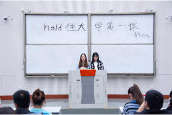在主持人进行精彩的开场白后,此次活动正式拉开了帷幕。首先,四位高年级优秀学生代表依次上台发言。他们借助精心准备的PPT,热情大方地向同学们分享了大学以来个人的学习经验、生活经历、及工作感想,鼓励新同学们要树立大学目标、合理安排时间、养成独立思考的习惯。